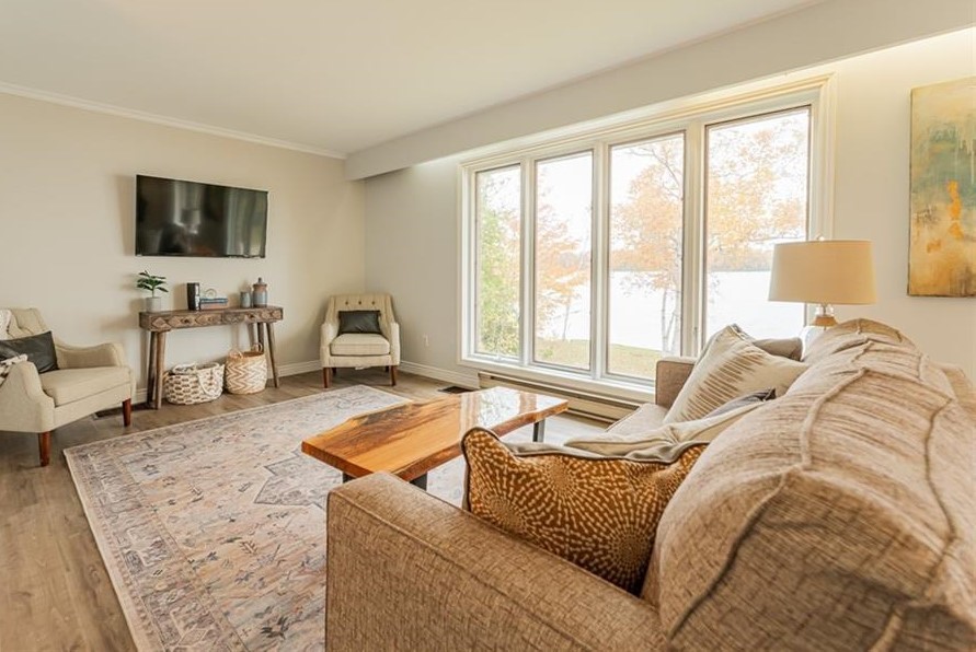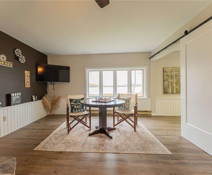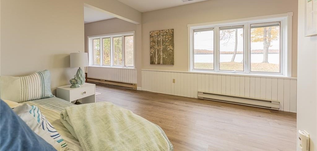 Spry Lake Shores is a luxurious 4 bedroom home located on a large private lot on the shores of Spry Lake. This modern lake front home books by the week and boasts stunning water views, hardwood floors and has all your amenities of home including a dishwasher and high speed internet. There is tons of space, both inside and out to enjoy. Bring along your favourite foods and cook a meal in our fully stocked gourmet kitchen. With only 10 minutes to Sauble Beach, 30 minutes to Lions Head and under an hour to Tobermory, there is plenty to do and see in the area. The house comfortably sleeps up to 7 guests with 3 queen beds and 1 single bed. The backyard hosts a flagstone patio with firepit, great for making smores.